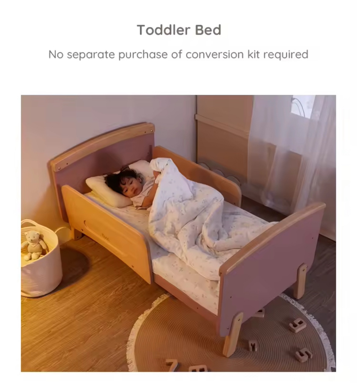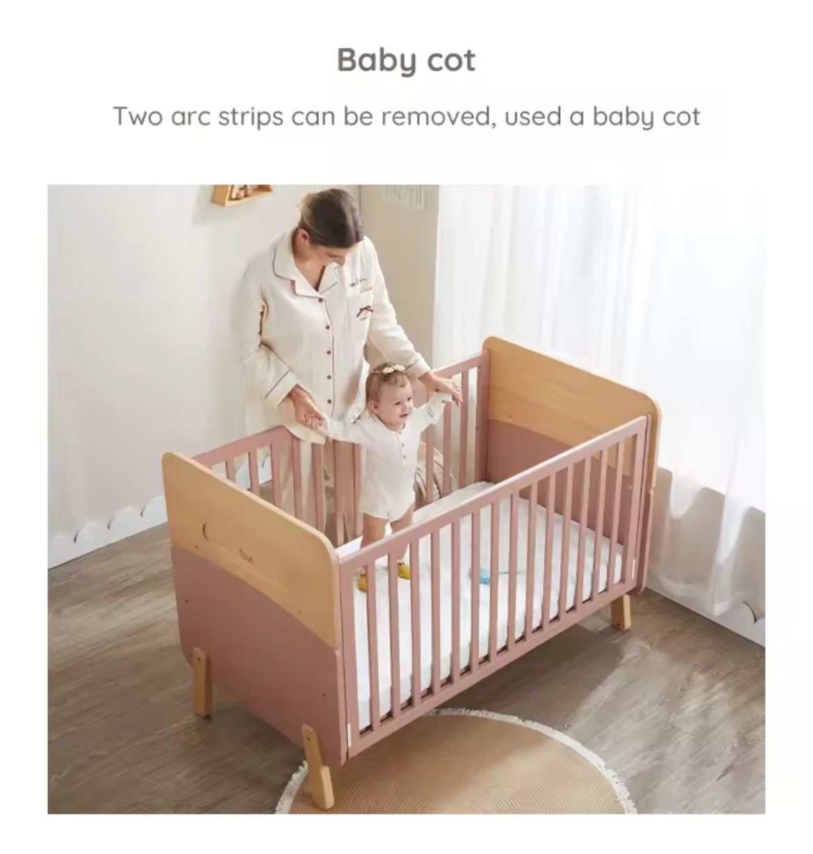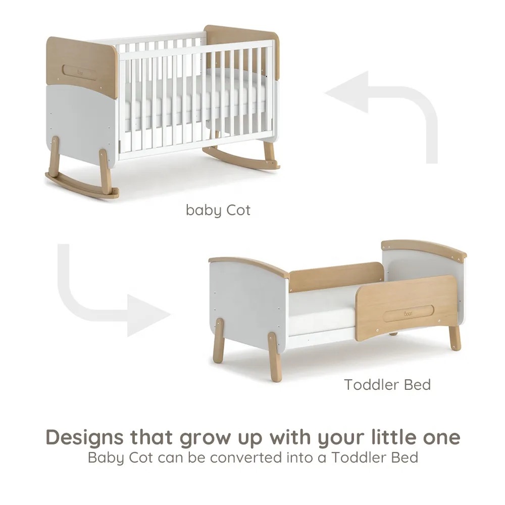 • Two arc strips can be removed and used as regular crib, later transferred to toddler bed – no separate purchase of conversion kit required
