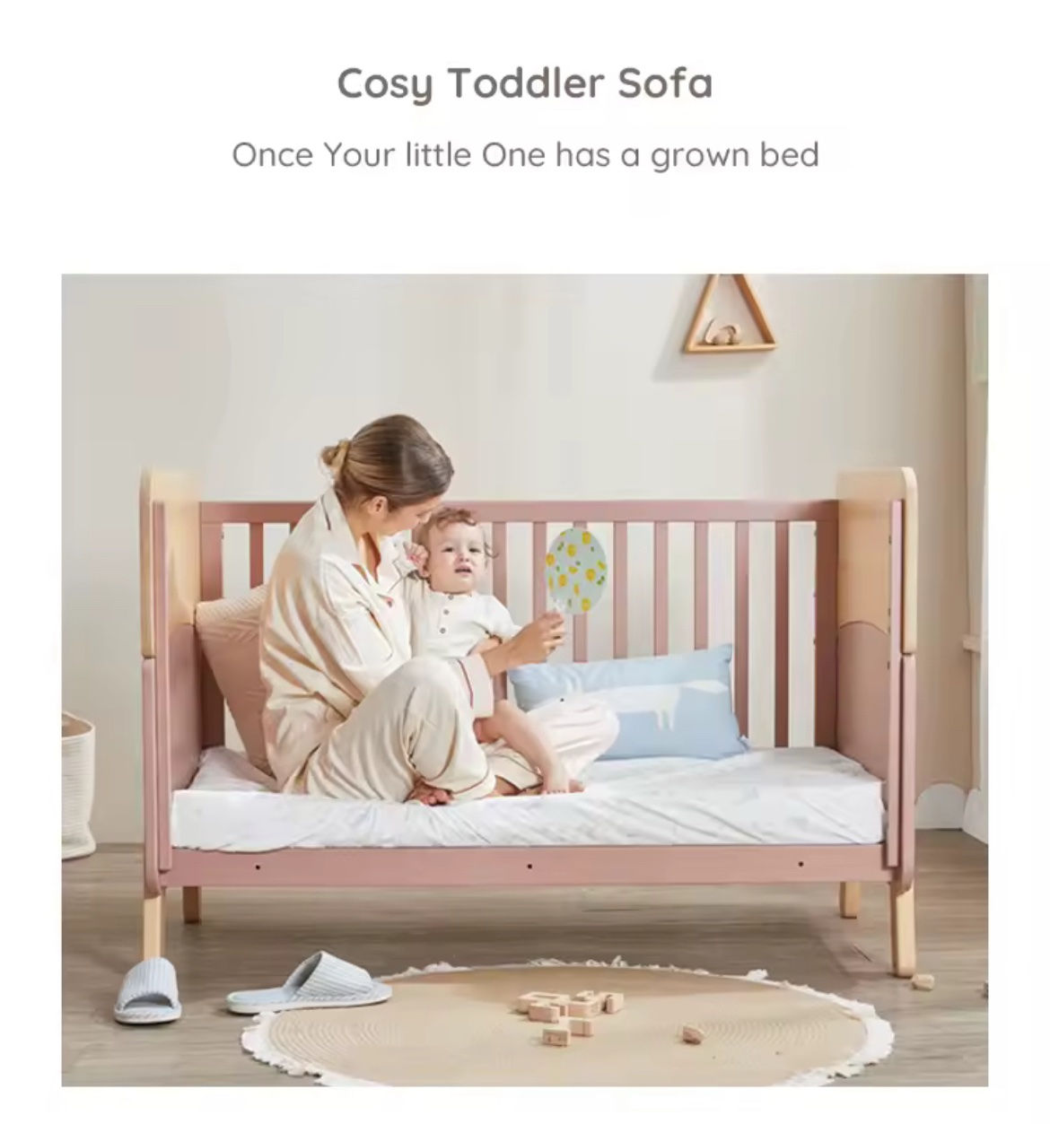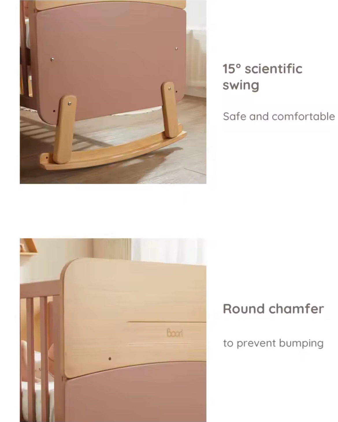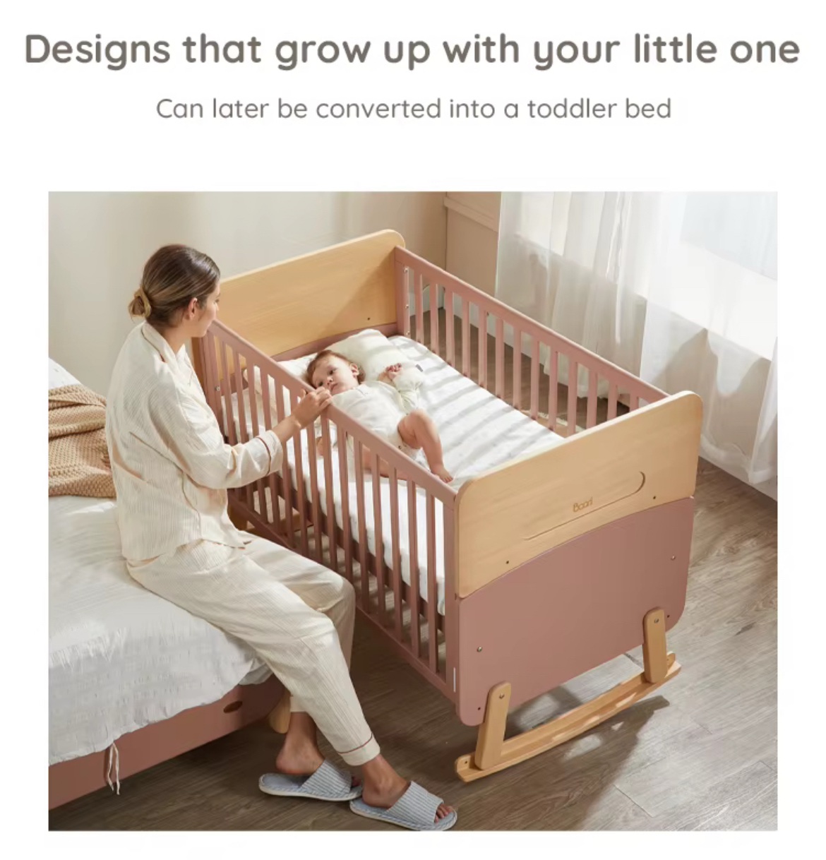 • Two arc strips can be removed and used as regular crib, later transferred to toddler bed – no separate purchase of conversion kit required